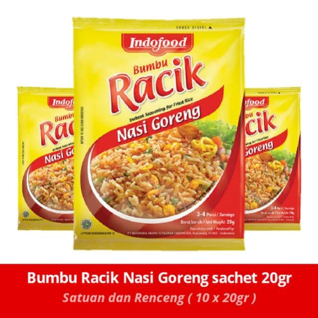 Indofood Bumbu Racik Nasi Goreng 20g Shopee Indonesia from cf.shopee.co.id Bumbu instan tersebut dapat anda temui di pasaran, seperti. Alias ga perlu bikin bumbu sendiri Nanti kalau mau masak tinggal tambahkan kelapa giling dan santan kelapa. Masukkan beras ke dalam air mendidih dan masaklah hingga matang. Kadar glutamatnya yang tinggi menghasilkan cita rasa umami yang membuat nasi goreng lebih lezat dan gurih. Cara membuat bumbu dasar putih : Puan habeebah md daud ada kongsikan resipinya. Nama seakan berasal dari luar negara tetapi sebenarnya usa adalah singkatan kepada nak cuba masak nasi goreng usa yang sedap secara homemade?